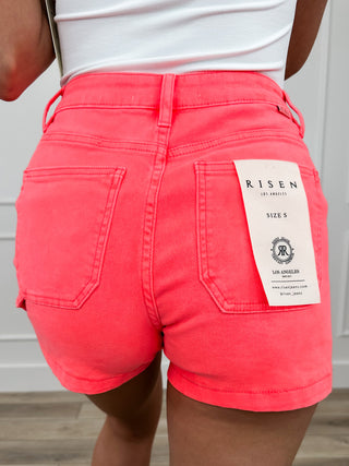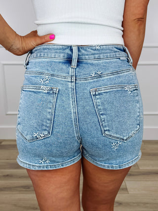 Risen Ember High-Rise Denim Shorts - Light Wash (Embroidered, Non-Distressed)