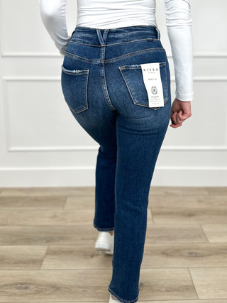 Risen Remi High-Rise Straight Leg Jeans - Dark Wash (Double Button, Distressed)