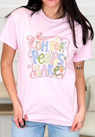 For Peeps Sake Cotton Short Sleeve Pink Avery Mae Graphic Tee Shirt