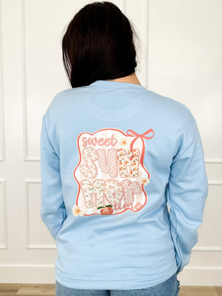 Sweet Summer Time Cotton Blend Long Sleeve Blue Avery Mae Graphic Crewneck Sweatshirt (Gildan)