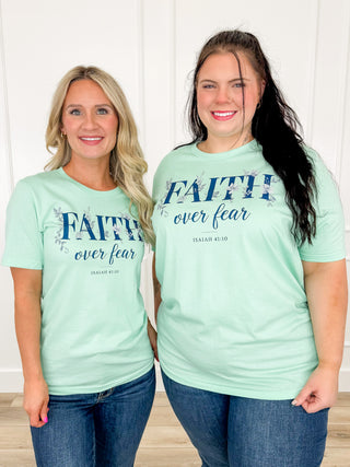 Faith Over Fear Cotton Short Sleeve Green Avery Mae Graphic Tee Shirt (Bella+Canvas)