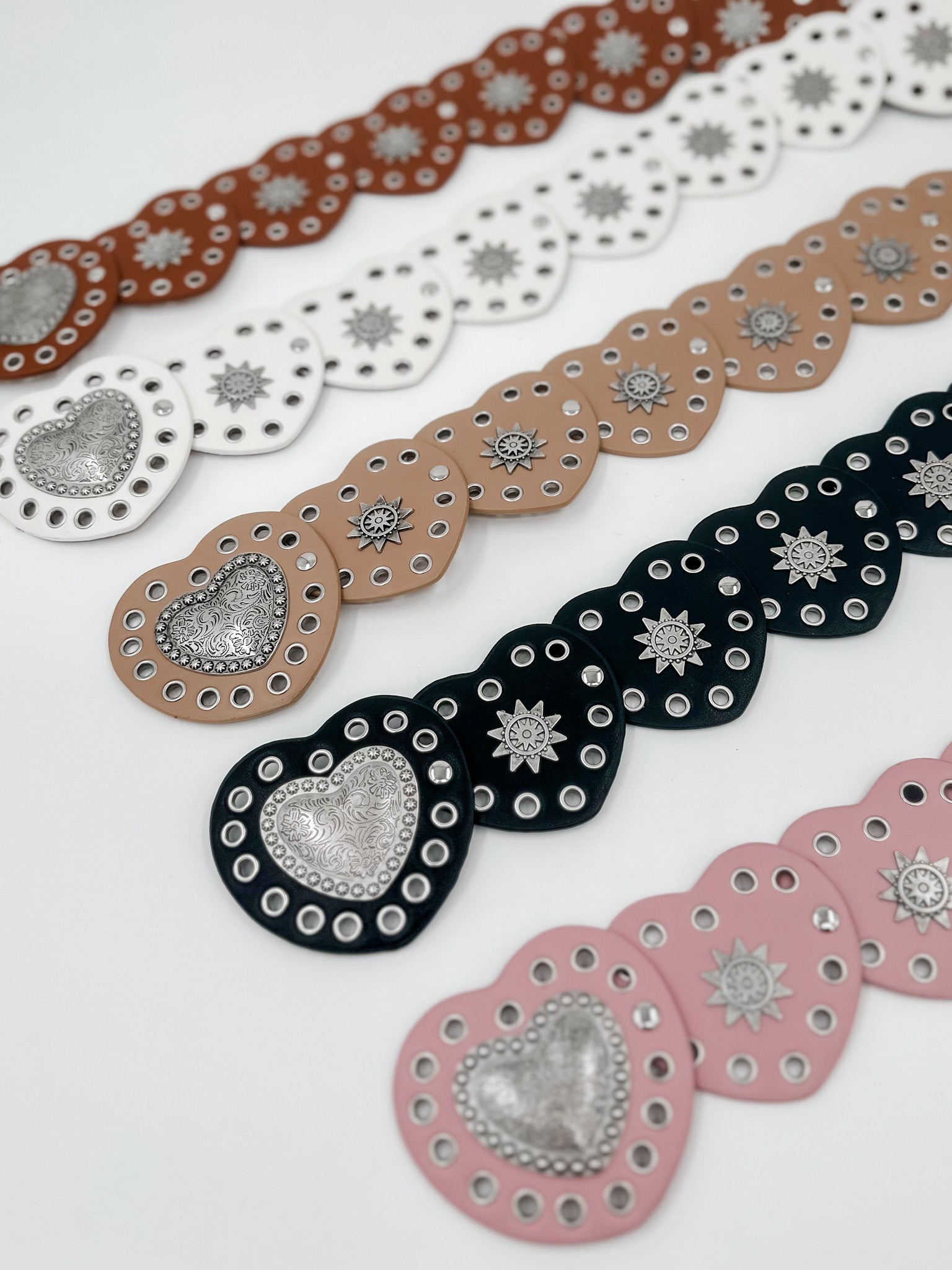 Add a touch of sparkle to any outfit with our Extra Bling Faux Leather Belt, available in five vibrant colors! Featuring a charming heart-shaped buckle, this belt is the perfect playful accessory to brighten your day and elevate your style with just the right amount of shine.