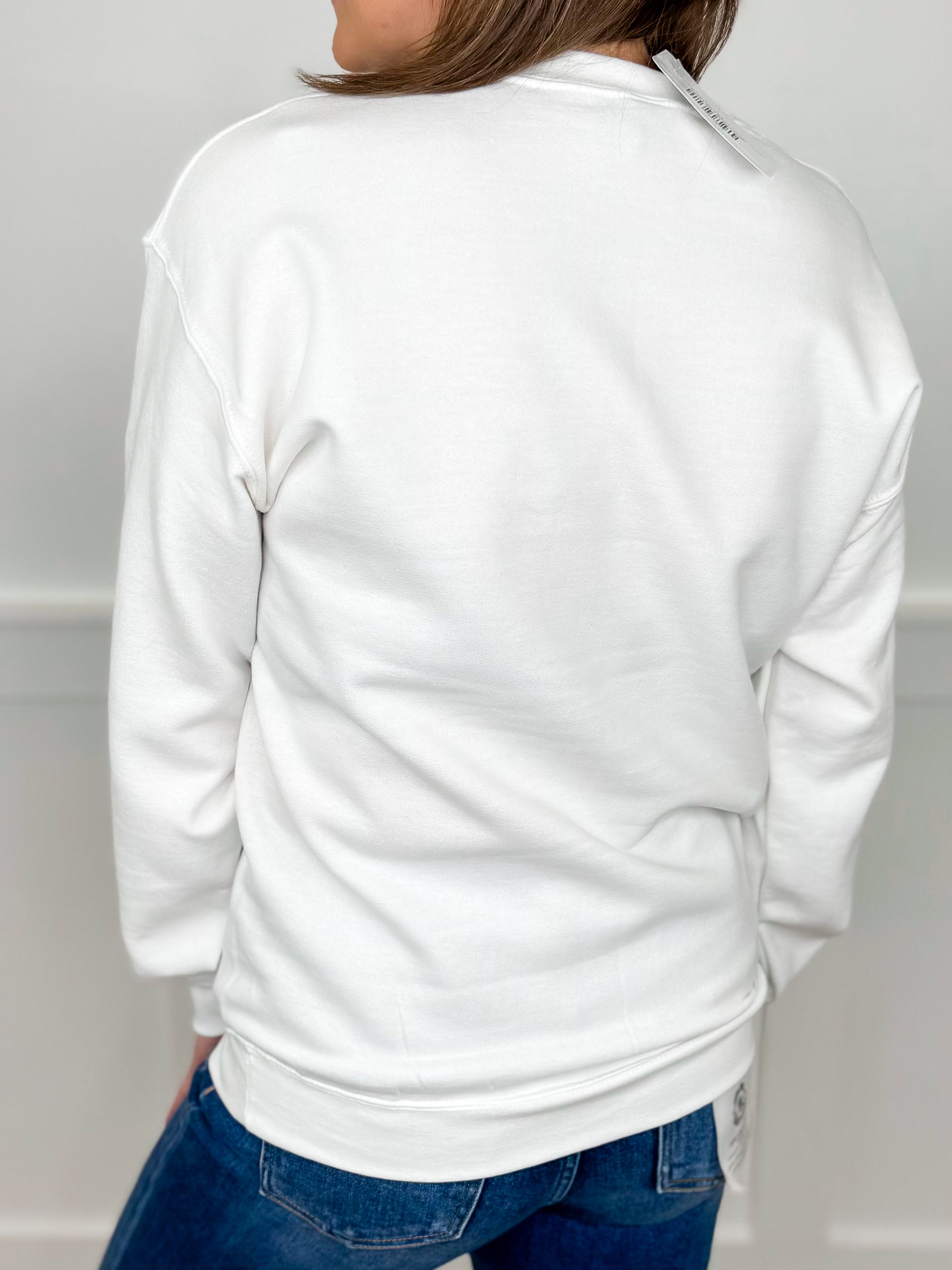 Tree Cake Tease Cotton Blend Long Sleeve White Avery Mae Graphic Crewneck Sweatshirt