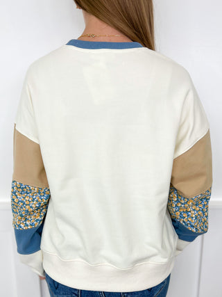 Wishlist The Rhythm of Bloom Cotton Long Sleeve Cream Mom Cropped Top