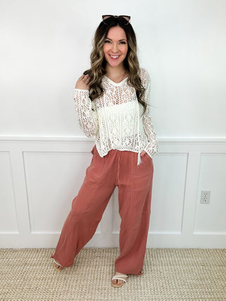 Fall Cozy Knit Long Sleeve Rust Avery Mae Button Up Cardigan
