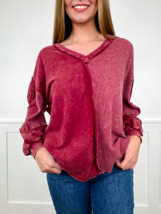 Collecting Secrets Ribbed Long Sleeve Wine Avery Mae Top