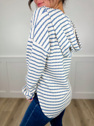 New Adventures Knit Long Sleeve Blue Avery Mae Hooded Top