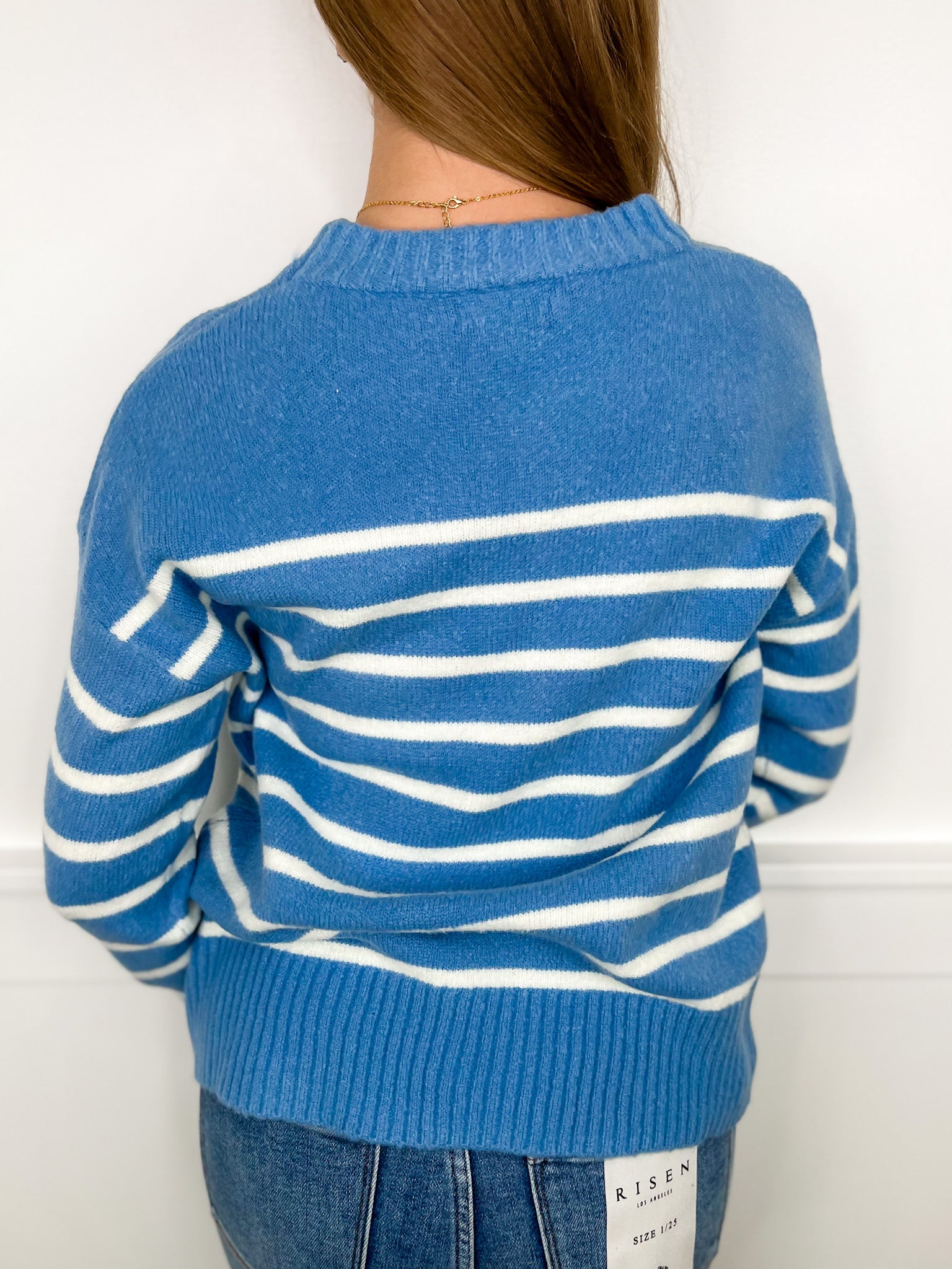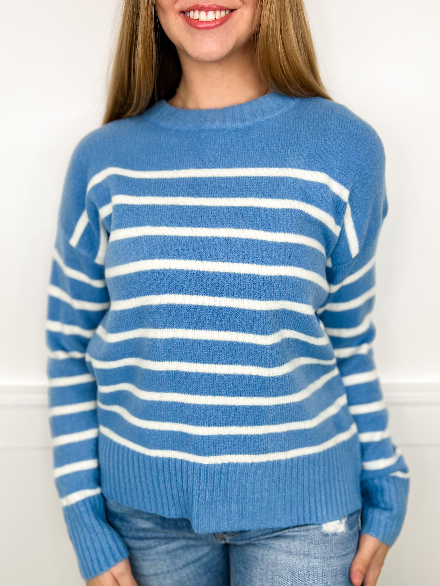 Cozy up in playful style with this soft, striped crewneck sweater. Featuring fun horizontal stripes and a comfy knit fabric, it’s perfect for layering or adding a pop of pattern to your everyday look. Easy to wear and endlessly cute, it’s a must-have for cool, casual days.
