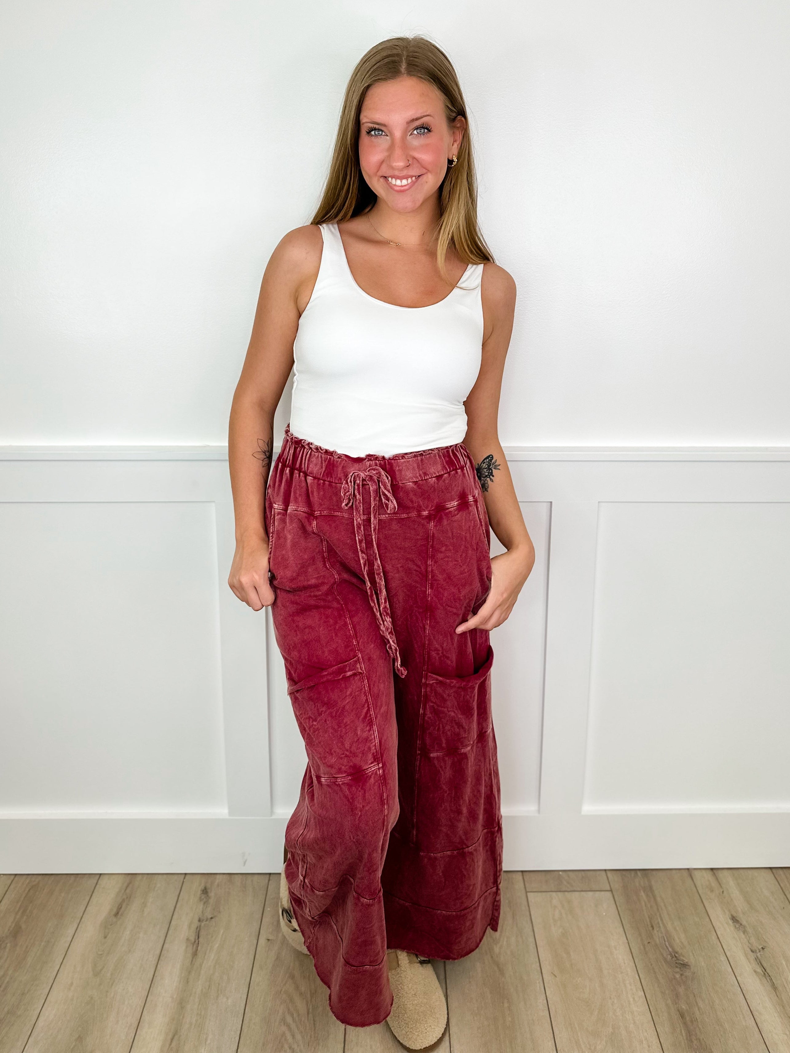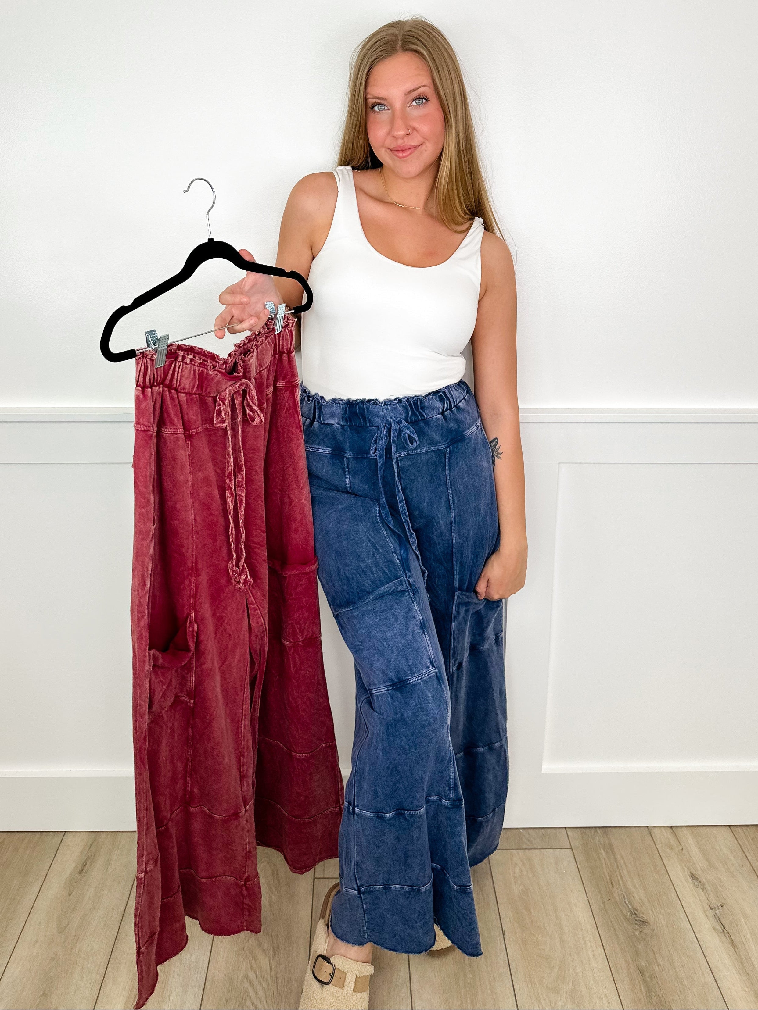 Float through your day in the In the Clouds bottoms, featuring a soft mineral wash, flattering high-rise fit, and wide legs that move with you. With handy pockets to stash your essentials, these cotton bottoms blend comfort and style effortlessly.