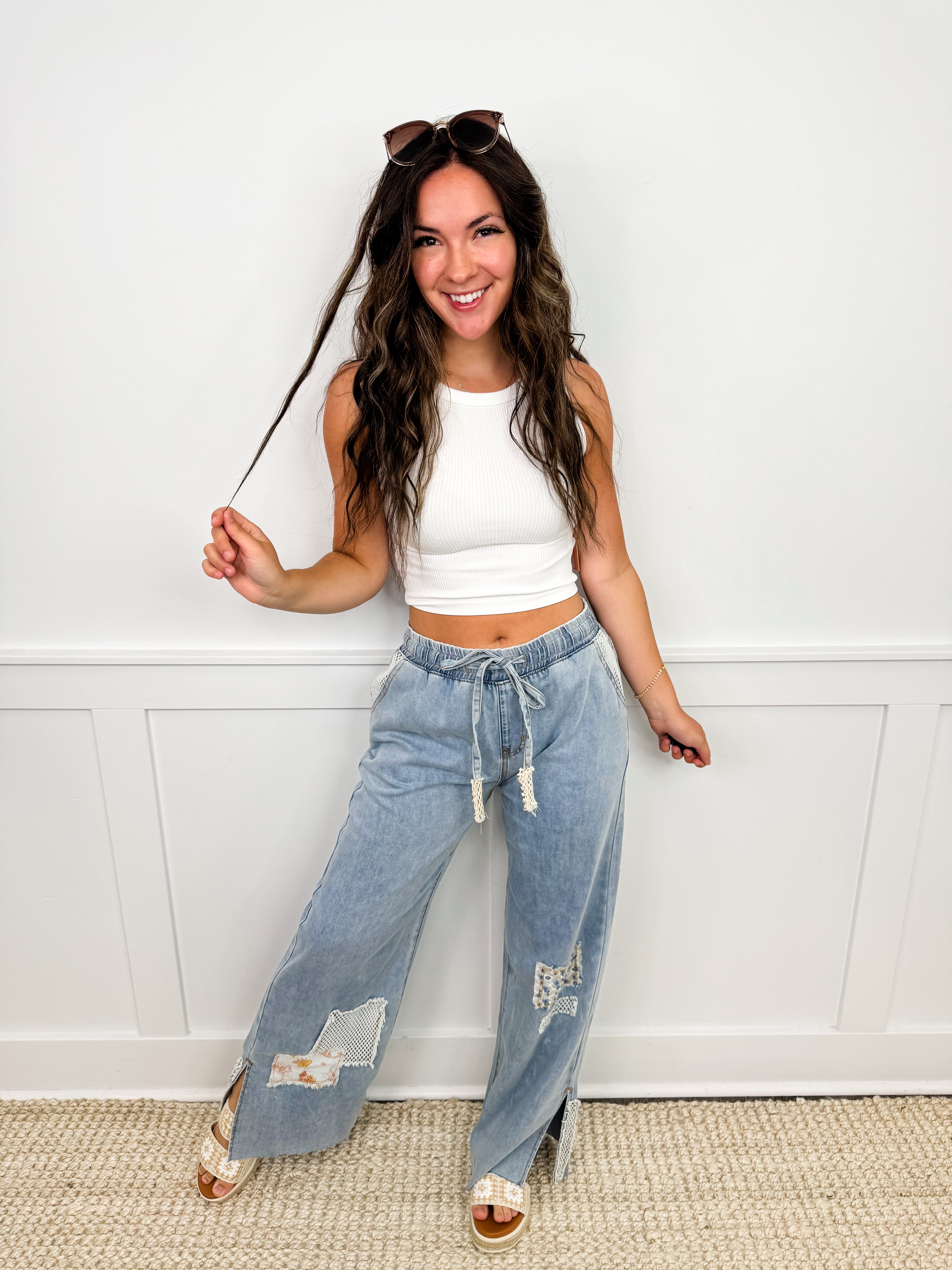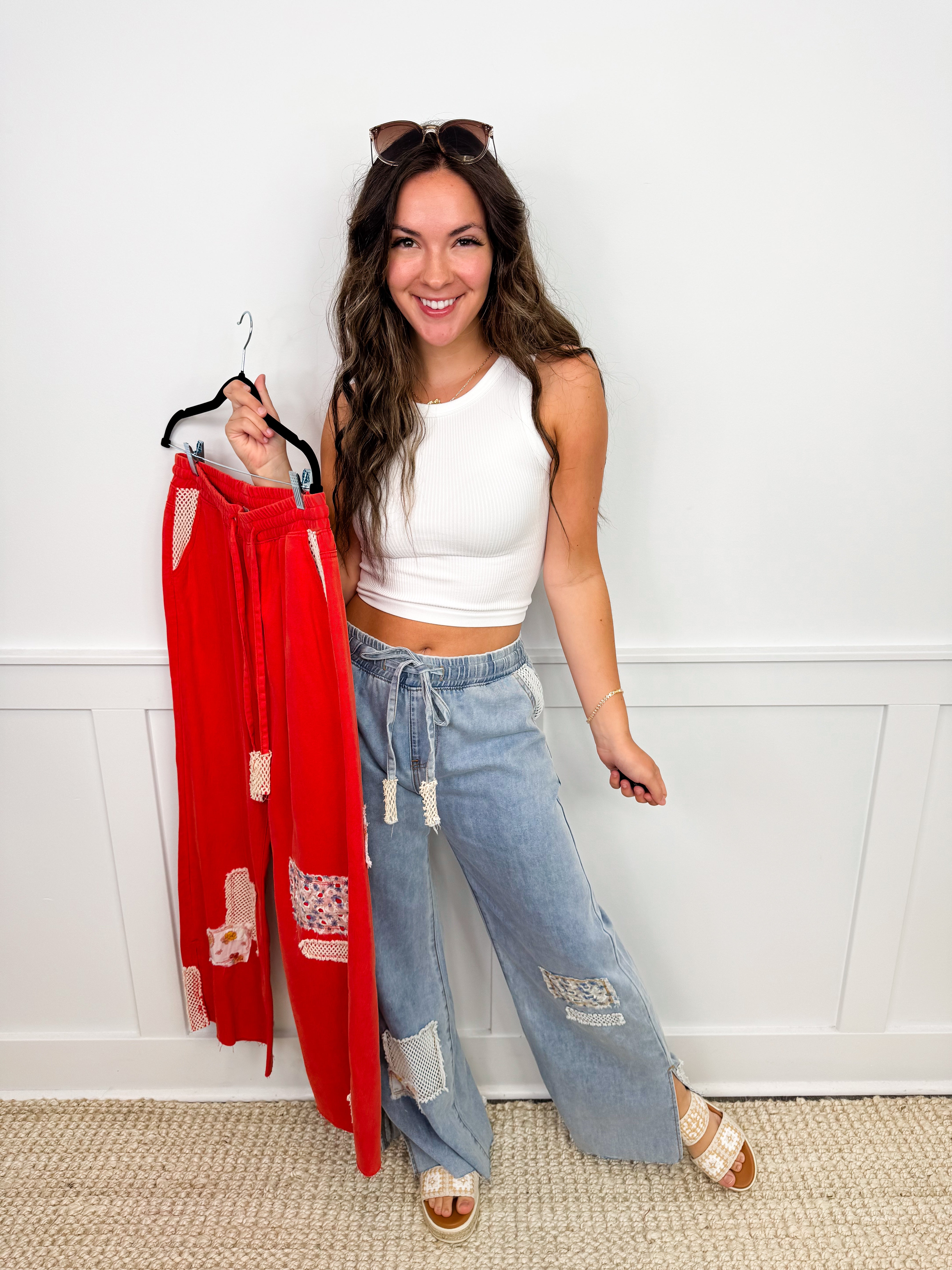 POL Pretty Patches High Rise Cotton Wide Leg Bottom - 2 colors!