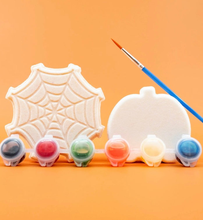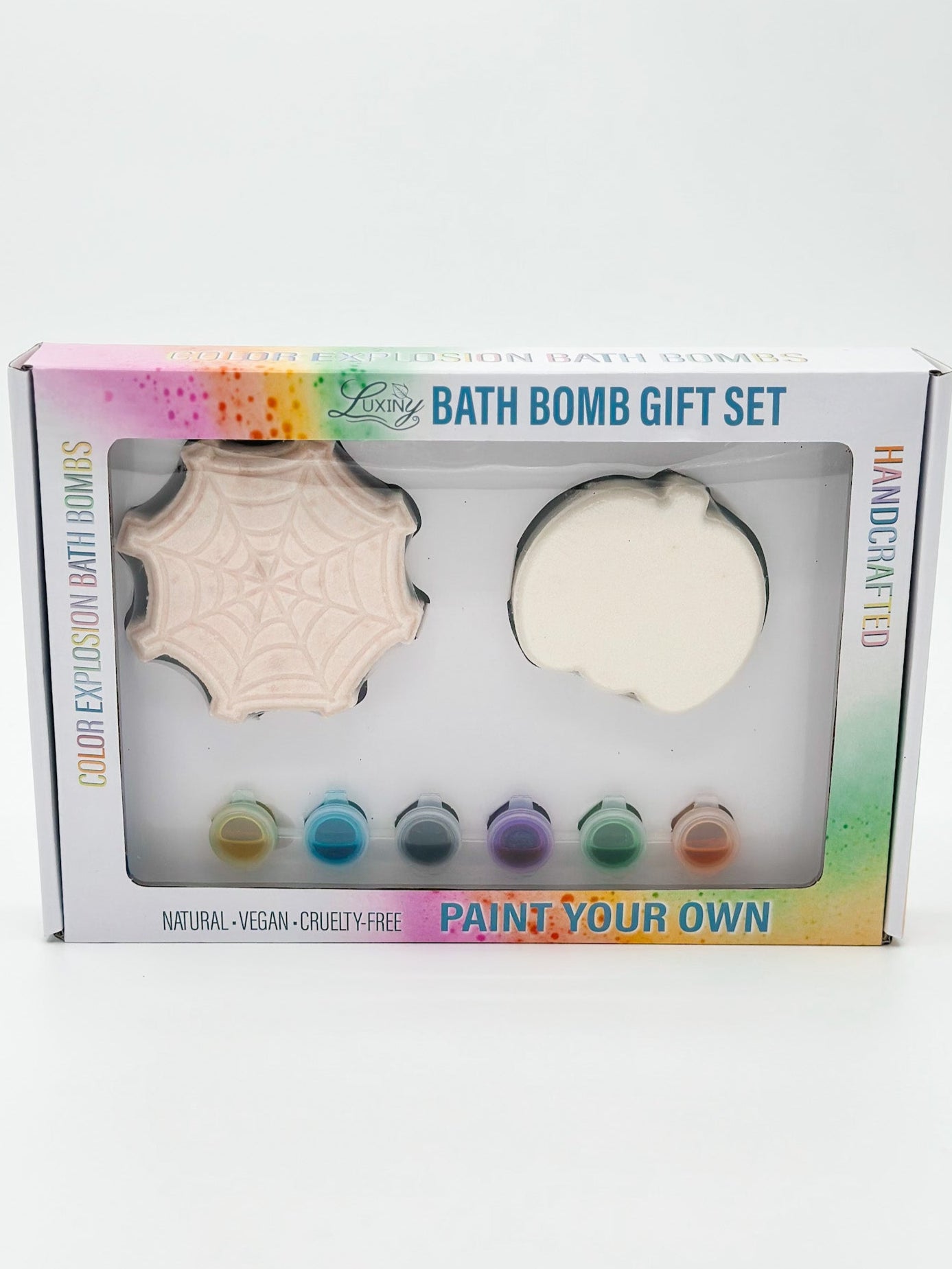 Get ready for a splash of spooky fun with this Paint Your Own Bath Bomb Set! Two large hand-pressed bath bombs come with six vibrant paints and a brush, letting you create your own colorful designs. The paints won’t fizz the bombs—they’re specially made to keep the magic going. Made with vegan ingredients like Coconut Milk Powder and Sweet Almond Oil, these bath bombs leave your skin feeling soft and pampered. Perfect for a playful, relaxing bath experience that’s as creative as it is soothing!