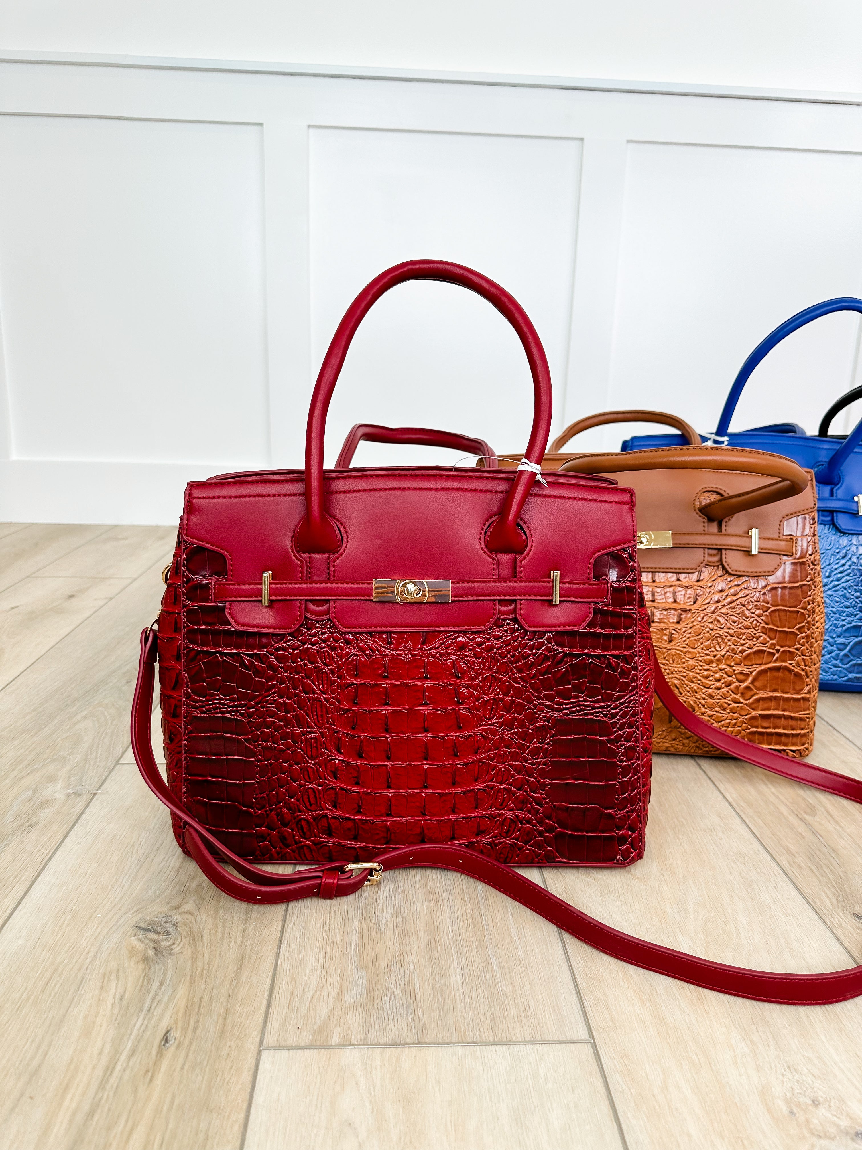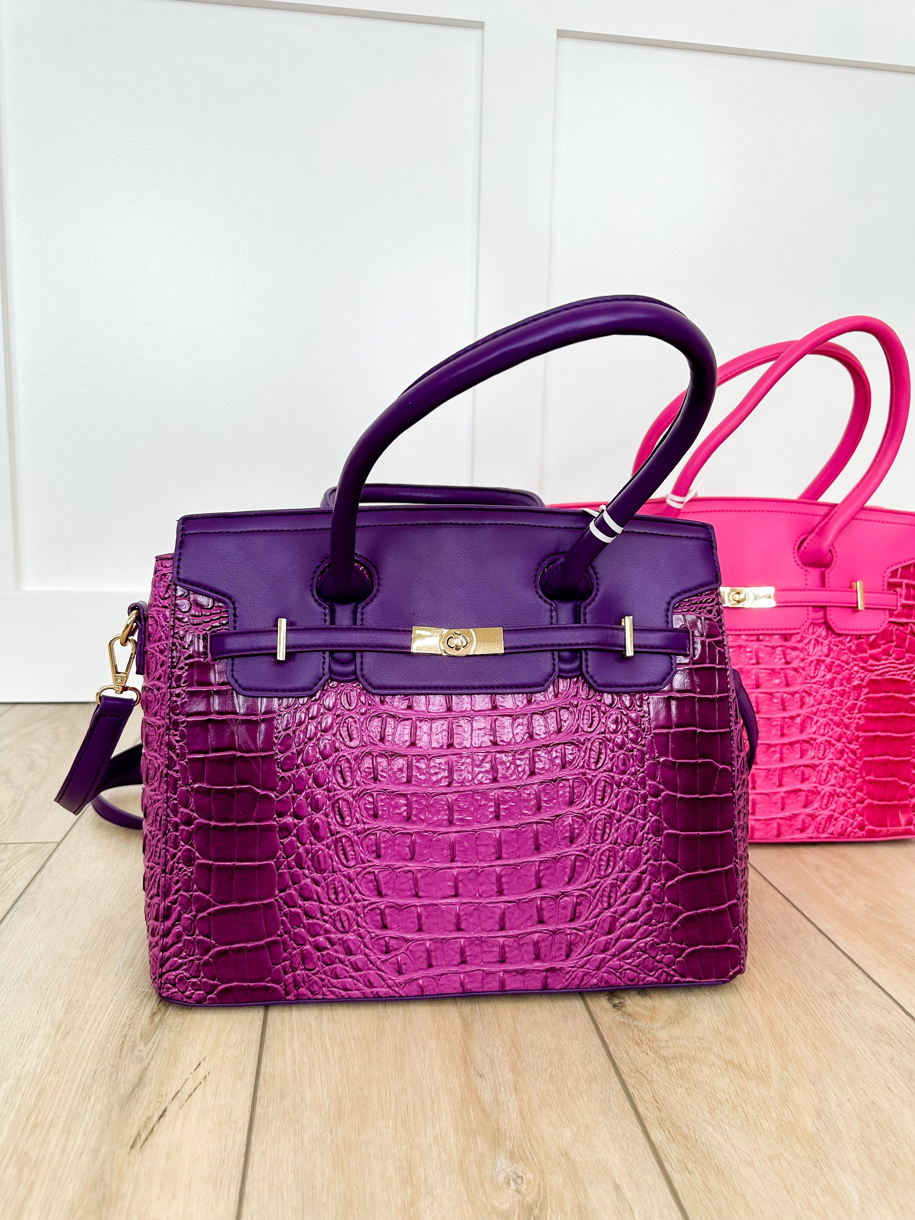 Meet your new everyday sidekick: the Finding Fierce Faux Leather Tote Bag & Wallet Set! Crafted with stylish faux alligator skin, this bag adds a bold touch to any outfit. It comes with a matching wallet and an extra strap, so you can switch it up and wear it as a shoulder bag whenever you like. Available in five fun colors, it’s perfect for carrying your essentials with a fierce flair!