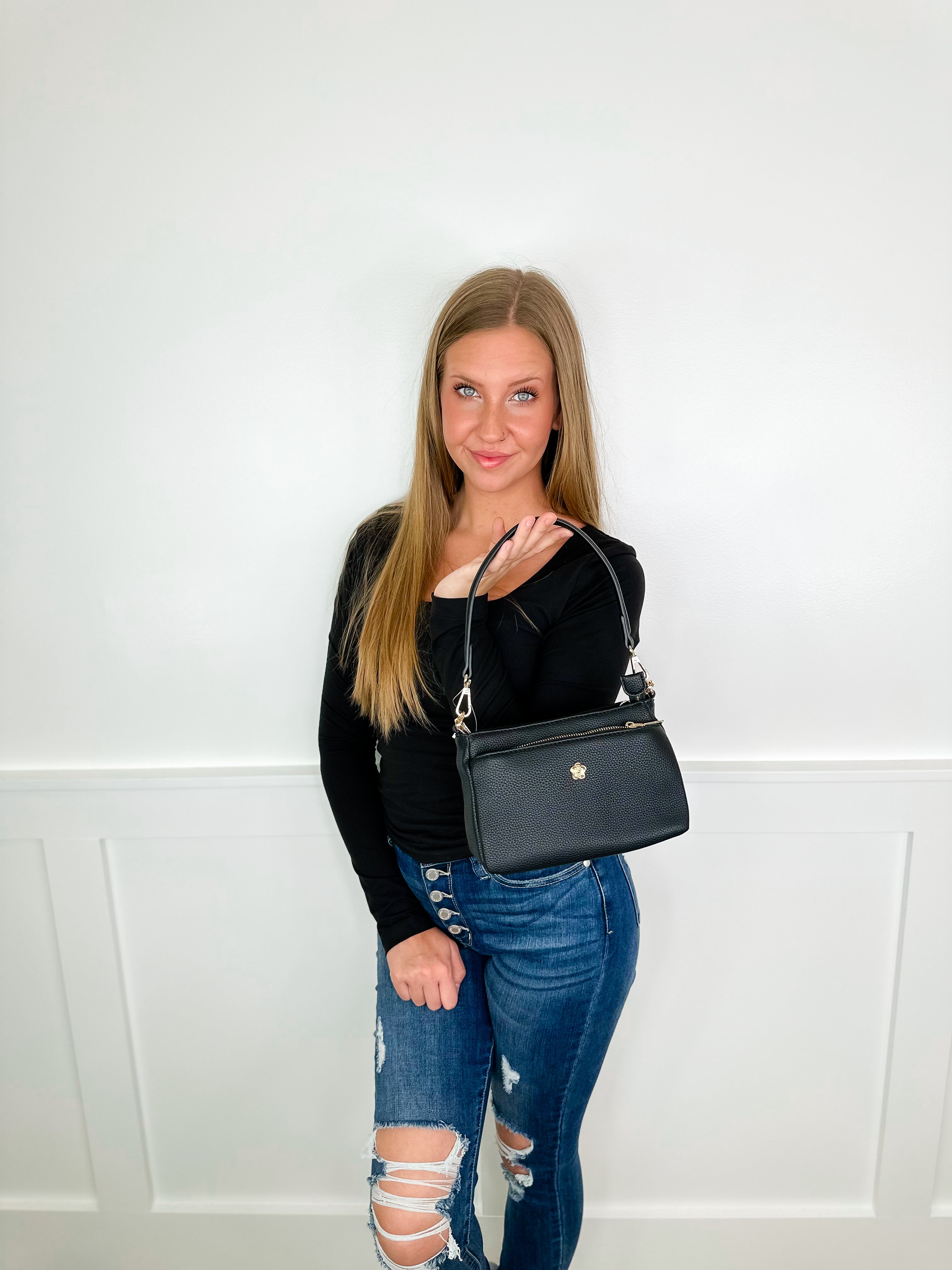 Step out in style with the Walk My Way Faux Leather Handbag! Featuring three roomy compartments, this bag keeps your essentials organized and easy to find. Switch between the long strap for hands-free fun or the short strap for a chic carry. The charming gold flower detail adds a playful touch to any outfit. Available in six colors, it’s the perfect companion for your daily adventures!