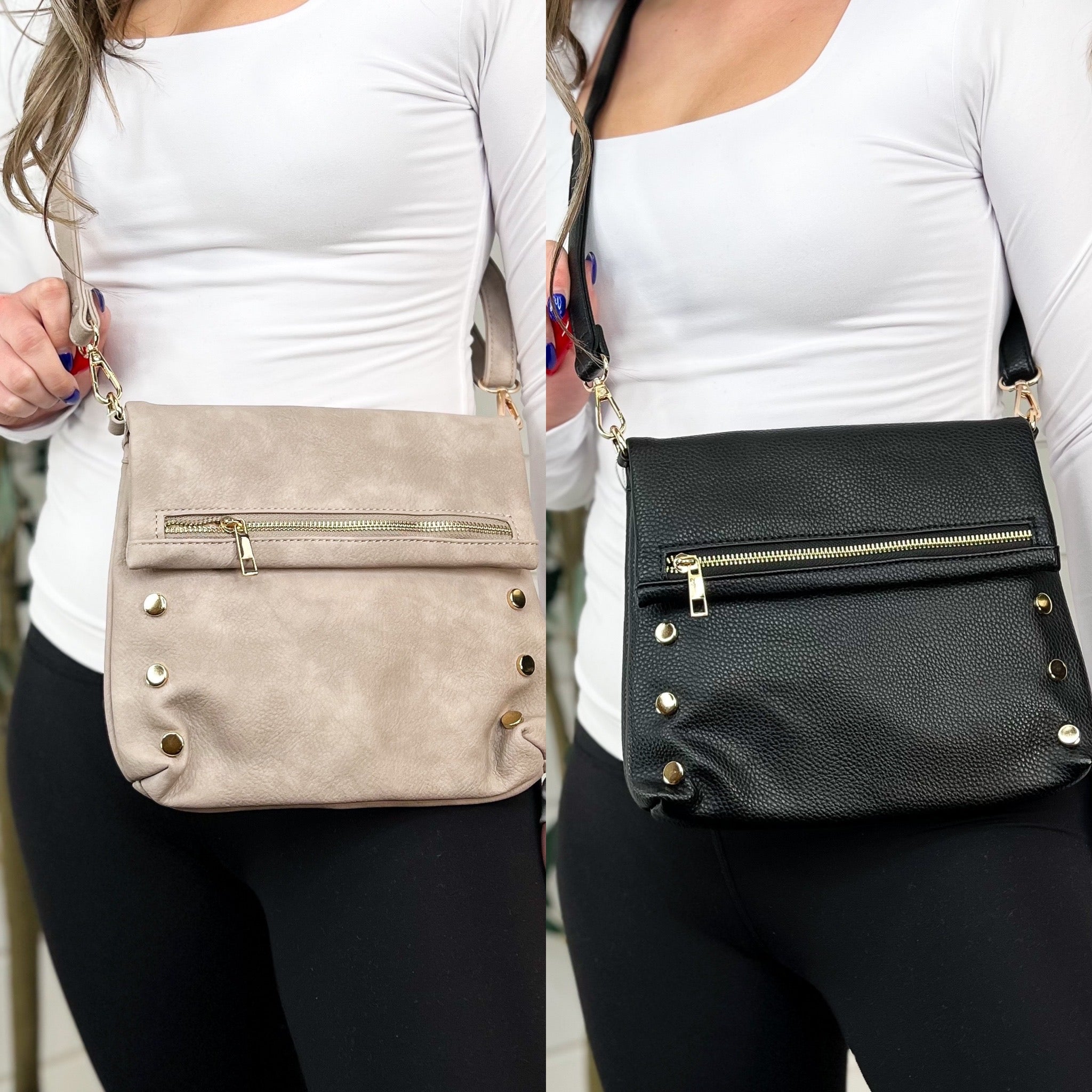 This beautiful faux leather crossbody bag comes in 2 colors and features a convenient fold over closure, a large compartment, and 2 built-in card slots. Stay organized and stylish on the go with this versatile bag!