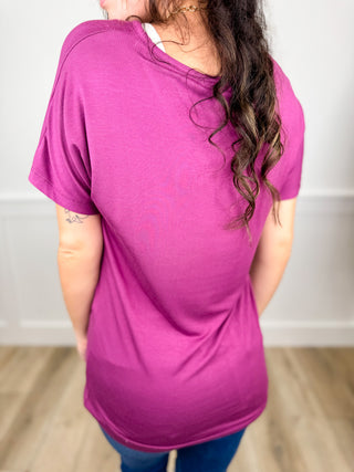 Basic Silence Speaks Volumes Rayon Blend Short Sleeve Berry Avery Mae Top