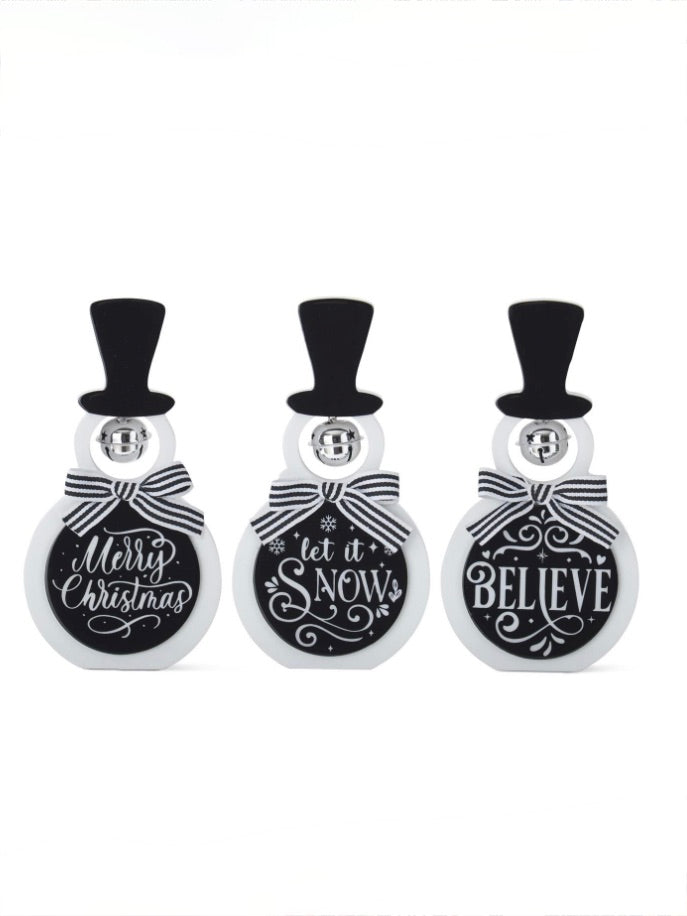 Add a festive touch to your home with the Jingle Joy Wood Shelf Sitter! This charming black and white snowman cutout features a playful jingle bell and comes in three delightful options: "Merry Christmas," "Let It Snow," or "Believe." Perfect for shelves, mantels, or tabletops, it’s an easy way to spread holiday cheer with a whimsical vibe. Choose your favorite phrase and let the jingle bring joy all season long!
