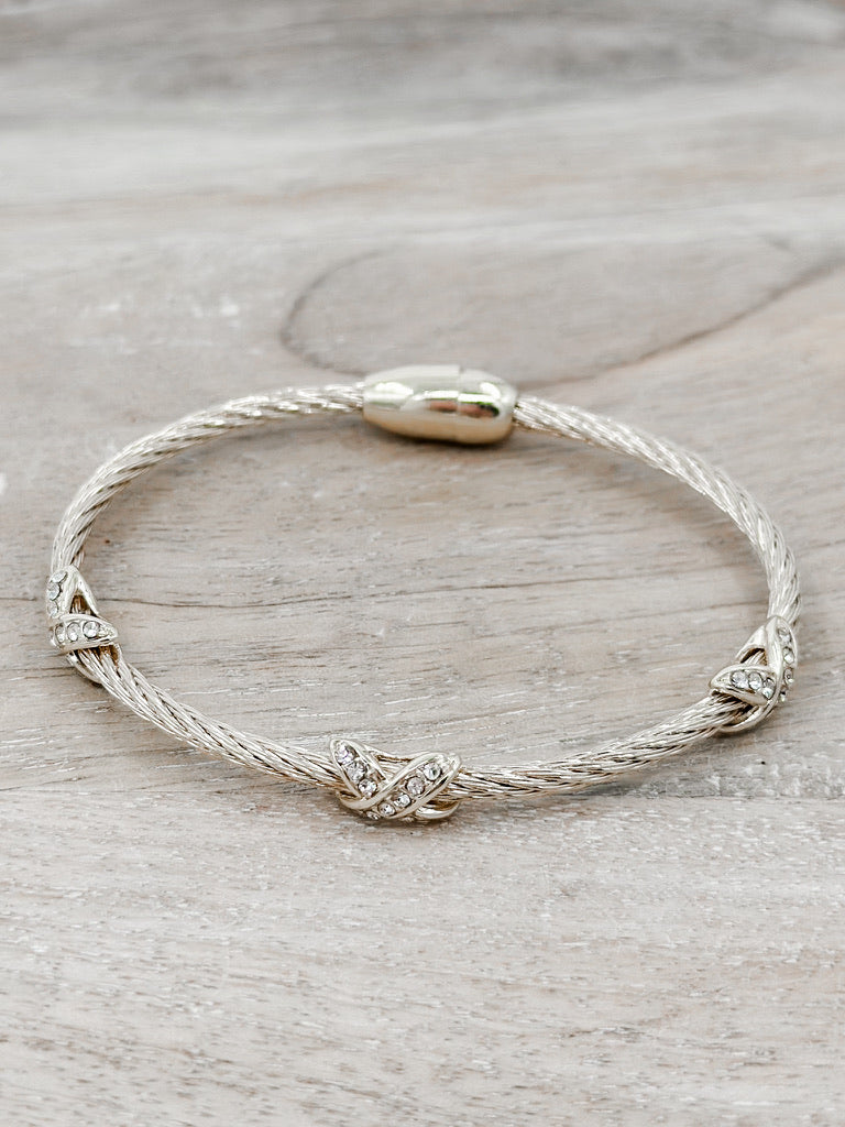 Elevate your wrist game with this stunning rope-style bracelet. The criss-cross design creates visual intrigue, while sparkling rhinestones catch the light with every gesture. Perfect for stacking or wearing solo, this playful piece adds instant glamour to any outfit—from casual vibes to dressed-up moments.