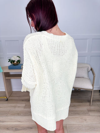 Letting it Happen Cotton Blend Long Sleeve Ivory Avery Mae Cardigan