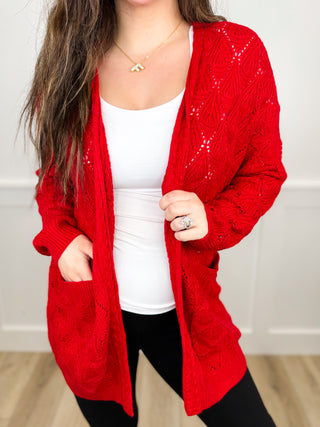 Wishlist Holiday Statement Knit Long Sleeve Red Avery Mae Cardigan