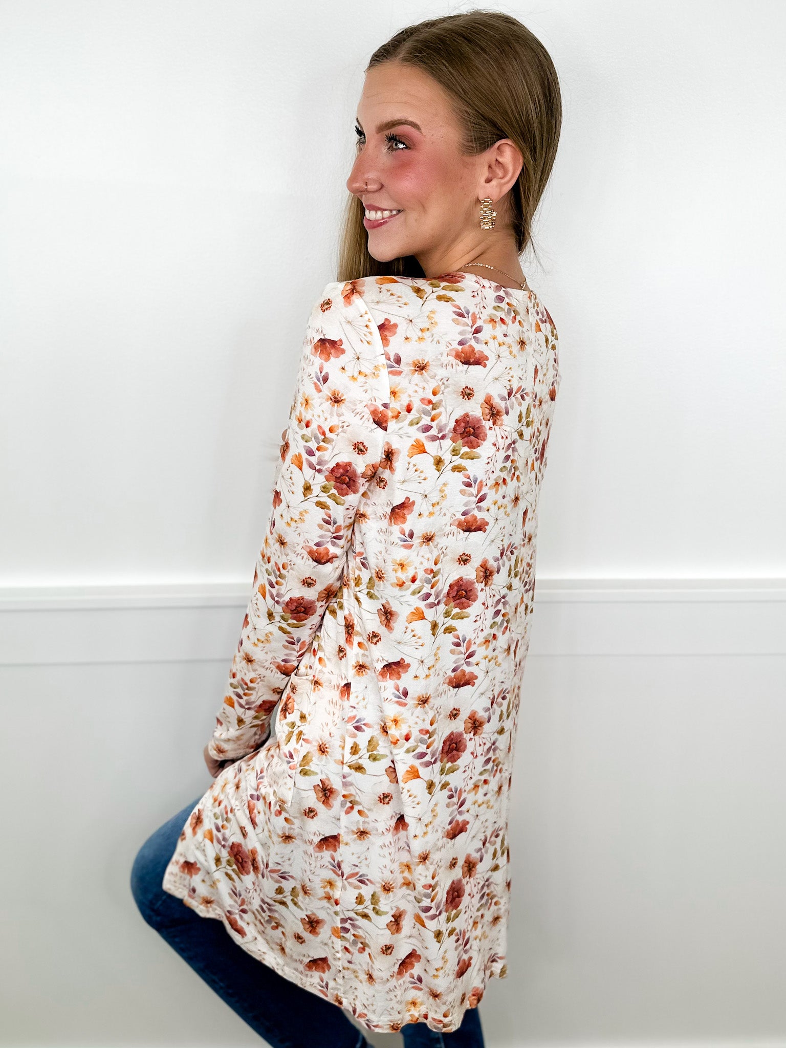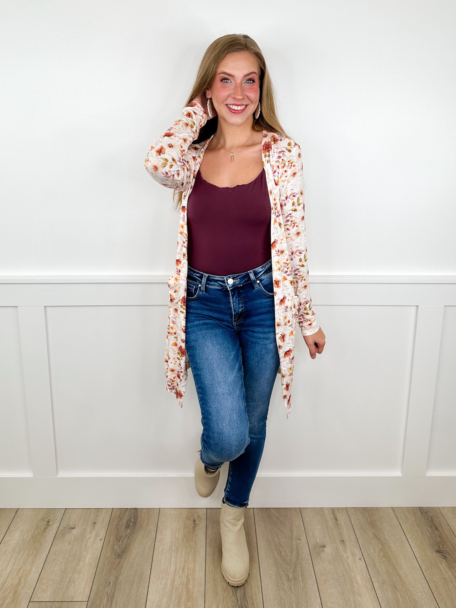 Wrap yourself in charm with this playful white cardigan, featuring a beautiful floral pattern that blooms with every wear. Its long length and lightweight rayon blend make it perfect for layering comfortably all day. Add a touch of effortless whimsy to any outfit with this flirty, flowy Avery Mae favorite.