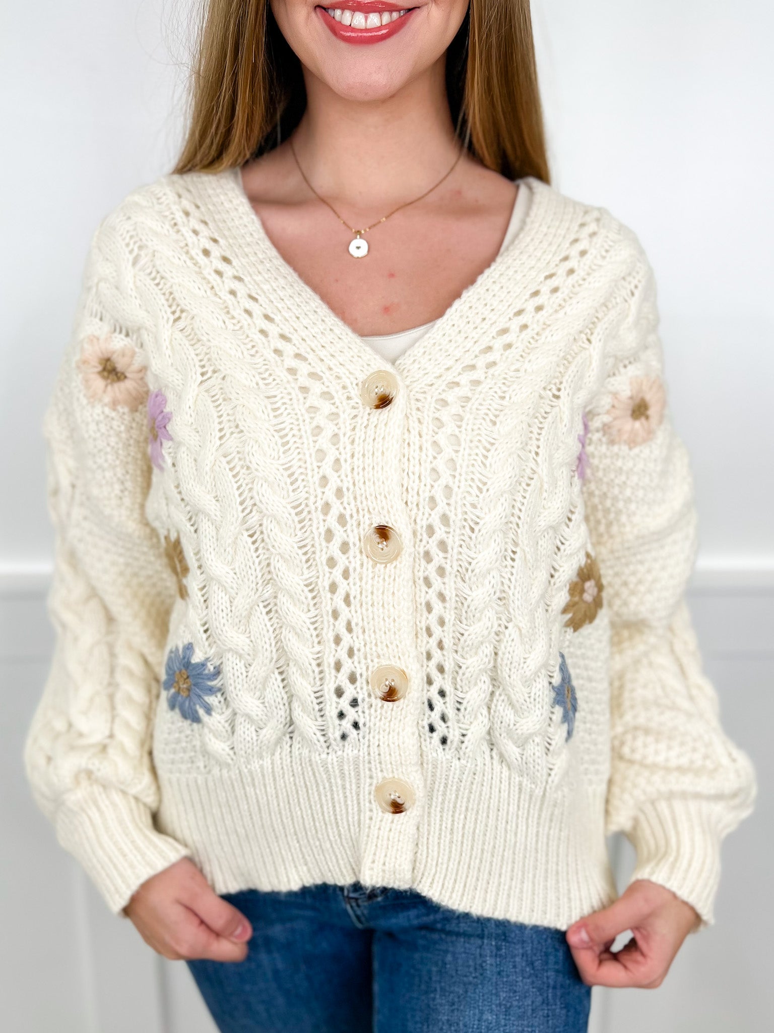 Elevate your cozy style with the Looking to the Future Knit Cardigan! This soft knit features a flattering V-neck and charming floral details for a fresh, feminine touch. Button up for a snug fit that’s perfect for layering on cool days. Available in two delightful colors to brighten any outfit!