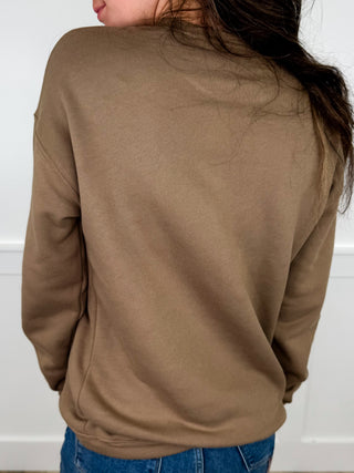 Mooey Christmas Cotton Blend Long Sleeve Mocha Avery Mae Graphic Crewneck Sweatshirt