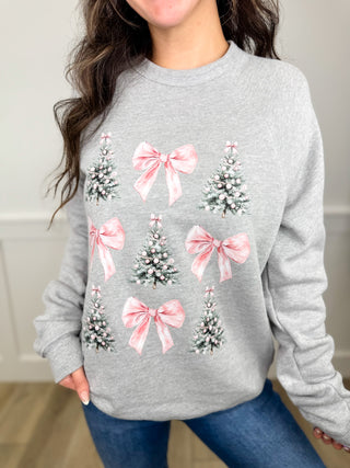 Christmas Bows & Branches Cotton Blend Long Sleeve Grey Avery Mae Graphic Crewneck Sweatshirt - 2 colors!