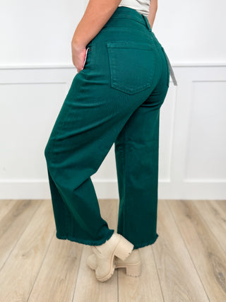 Risen Shana Tummy Control High Rise Fray Hem Wide Leg Green Cropped Jeans