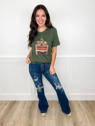 A Pawsitively Merry Ride Cotton Short Sleeve Green Avery Mae Graphic Tee Shirt
