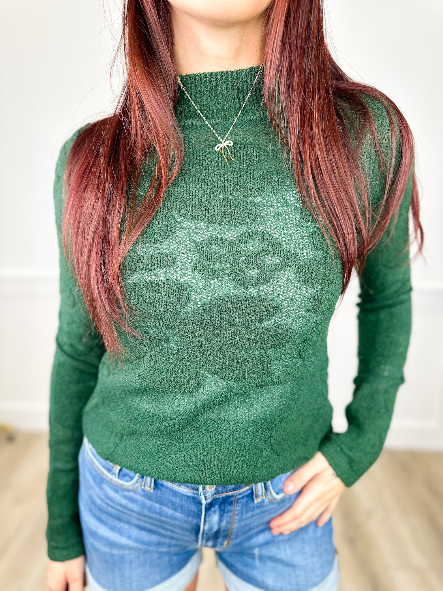 Elevate your everyday style with this charming knit sweater top featuring a sophisticated mock neck and eye-catching floral jacquard texture. The long sleeves and fitted silhouette create a polished look that transitions seamlessly from office to weekend brunch. Crafted with a playful spirit, this piece brings dimension and visual interest to any outfit while keeping you cozy and comfortable. Perfect for layering or wearing solo, it's the sweater top that does it all.