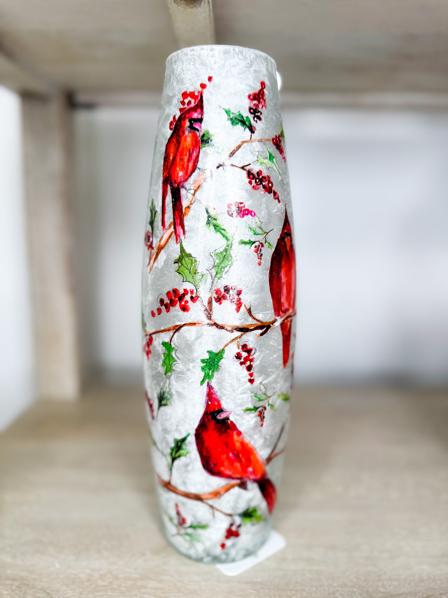 Bring a cozy winter glow to your home with the Snowbird Shimmer Frosted Glass Light Up Decor. Featuring charming cardinals perched on a holly branch, this plug-in decoration casts a soft, frosted light that adds warmth and magic to any room. Perfect for brightening up your holiday season with a playful and festive touch!