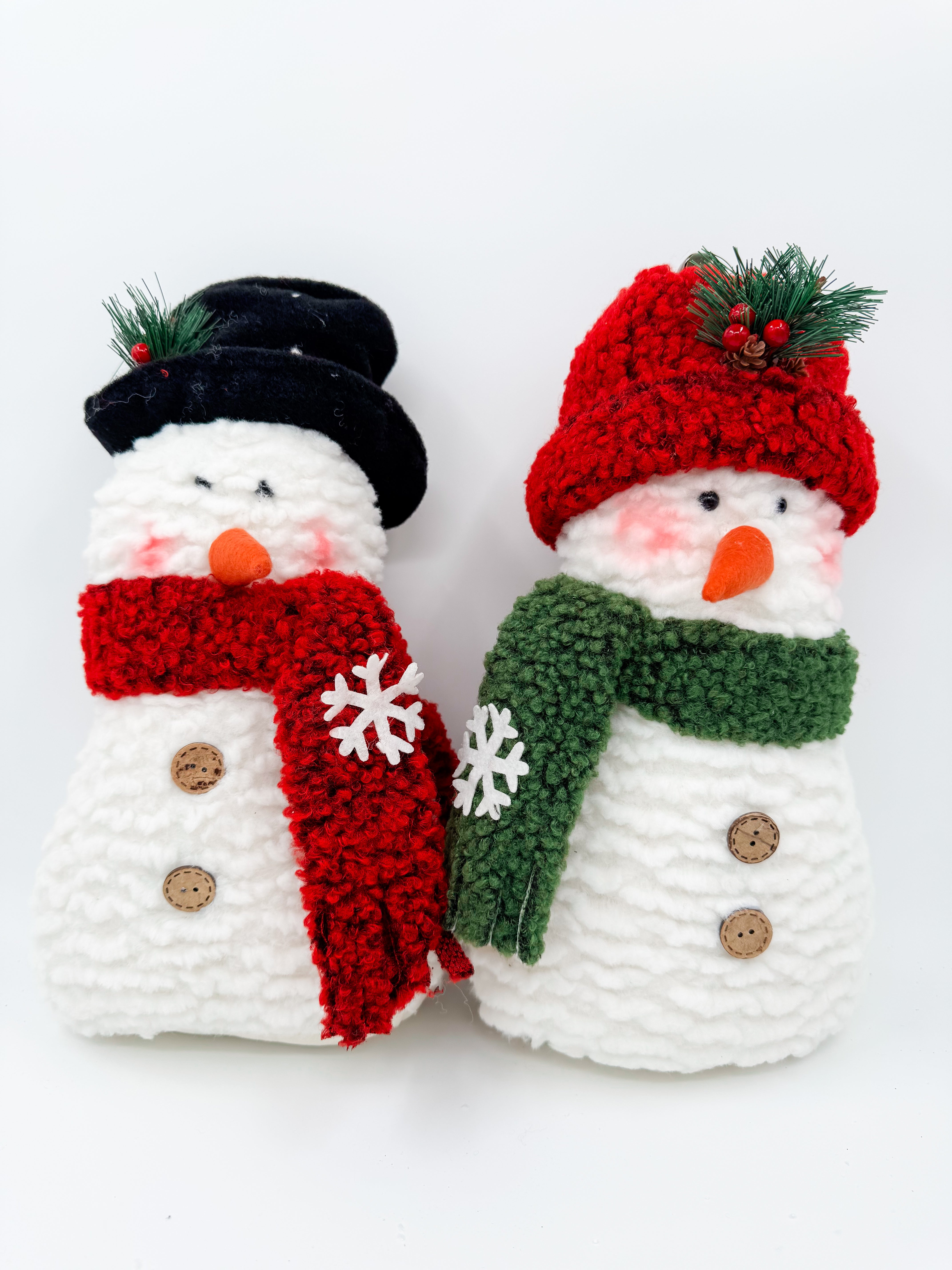 Bring the holiday spirit home with these adorable Winter Buddies Plush Decor! Choose between a charming snowman sporting a classic top hat and bright red scarf or a cozy friend with a festive red winter hat and green scarf. Perfect for adding warmth and cheer to any room, these plush pals make holiday decorating fun and inviting.