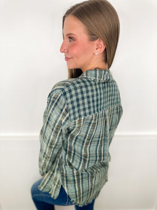 All About it Cotton Long Sleeve Green Avery Mae Button Up Top