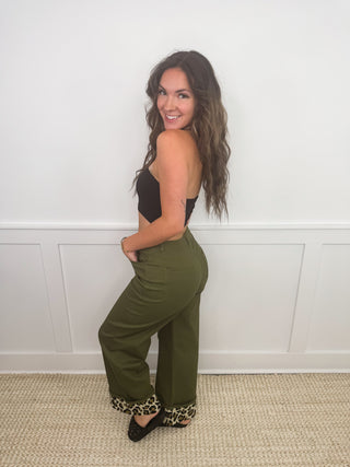 Urban Jungle High Rise Cotton Blend Wide Leg Green Avery Mae Bottoms