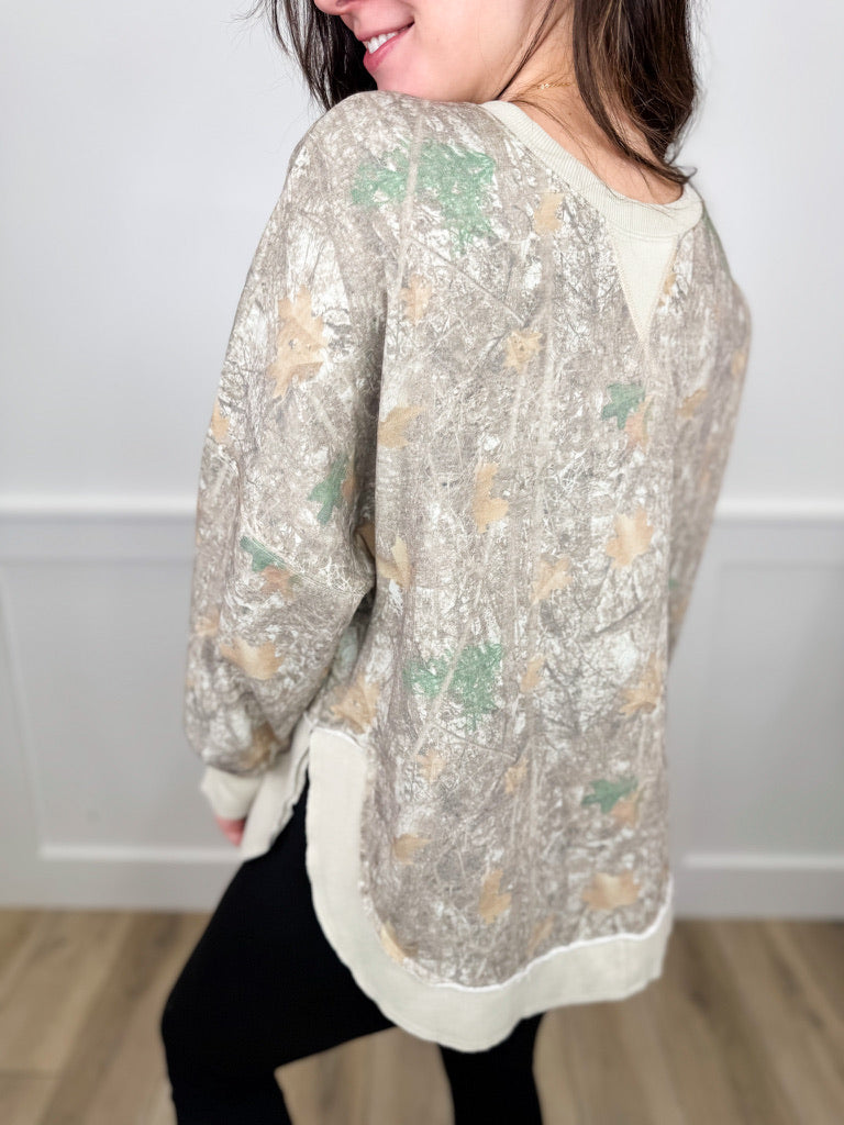 Rock this camo sweatshirt for instant cool-girl vibes. The relaxed fit and side slits give you that effortless, undone look, while the cotton blend keeps things cozy. Perfect for weekend hangs or casual days when you want to look put-together without trying.