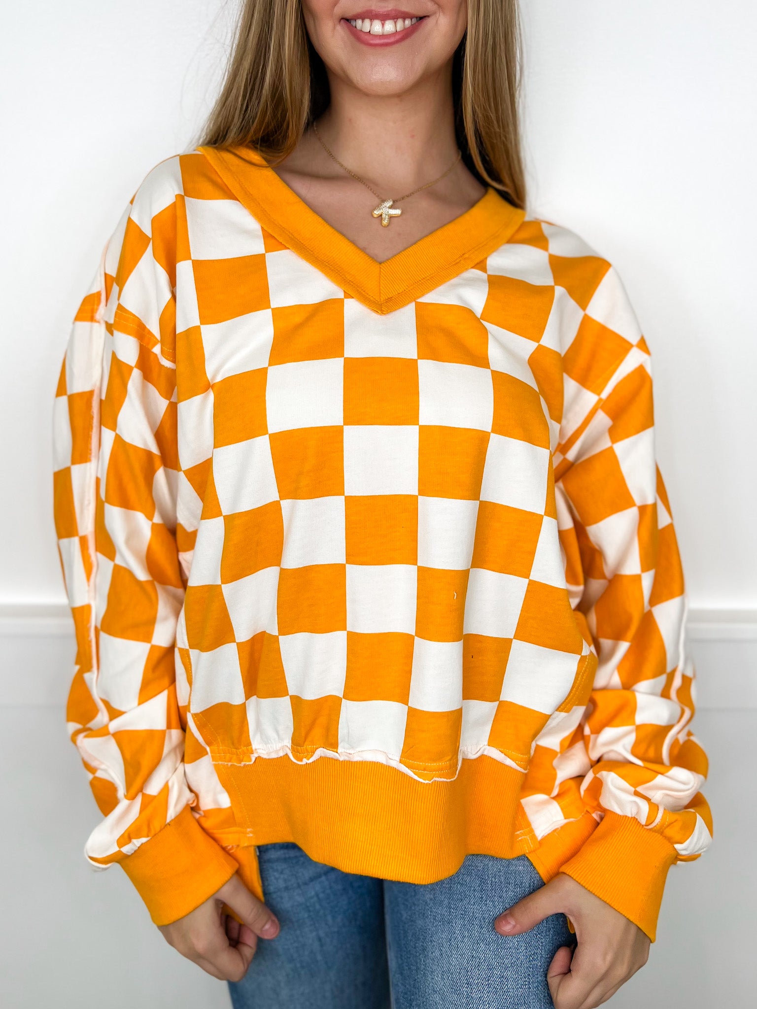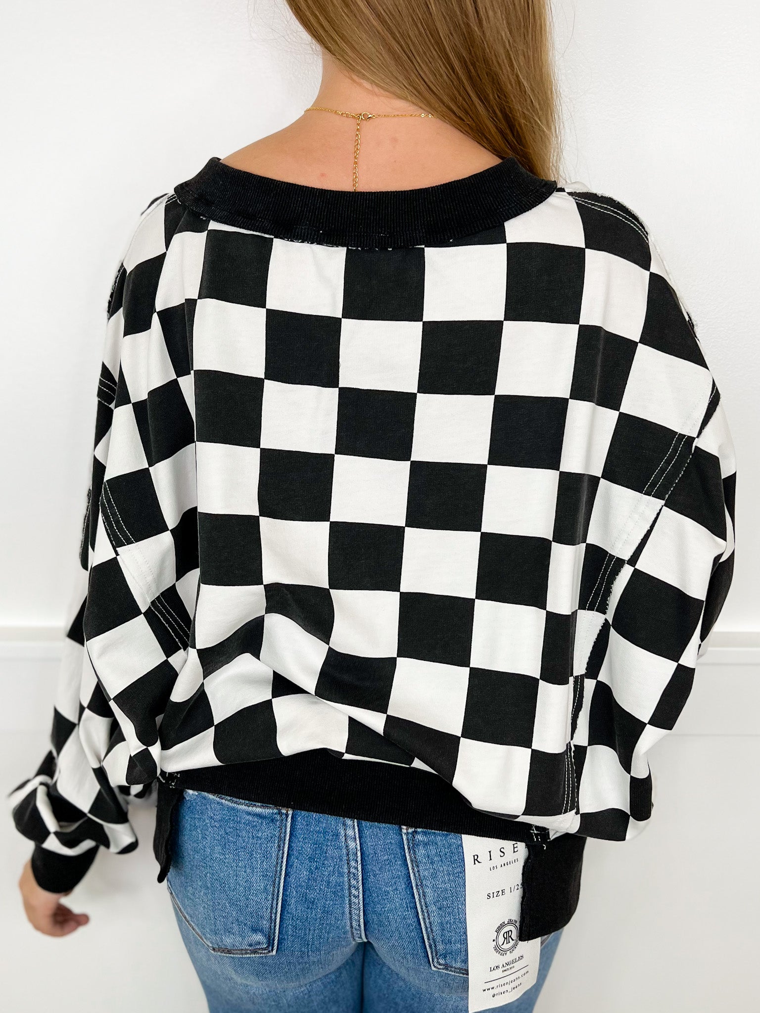 Add a playful pop to your wardrobe with the Ready to Roll Cotton Blend Long Sleeve Avery Mae Top! Featuring a cute checkered pattern in three vibrant colors, this top is perfect for race day or any time you want to brighten up your outfit. Soft, comfortable, and effortlessly fun, it’s the ideal choice to bring some excitement to your everyday look.
