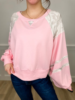 Easel Sweetheart Society Cotton Blend Long Sleeve Pink Avery Mae Top