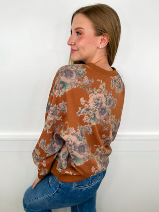 Fall is Calling Cotton Blend Long Sleeve Rust Orange Avery Mae Graphic Crewneck Sweatshirt