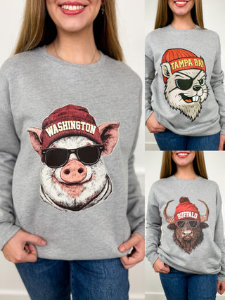 Two Game Day Gear Cotton Blend Long Sleeve Grey Avery Mae Graphic Crewneck Sweatshirt - 10 options!