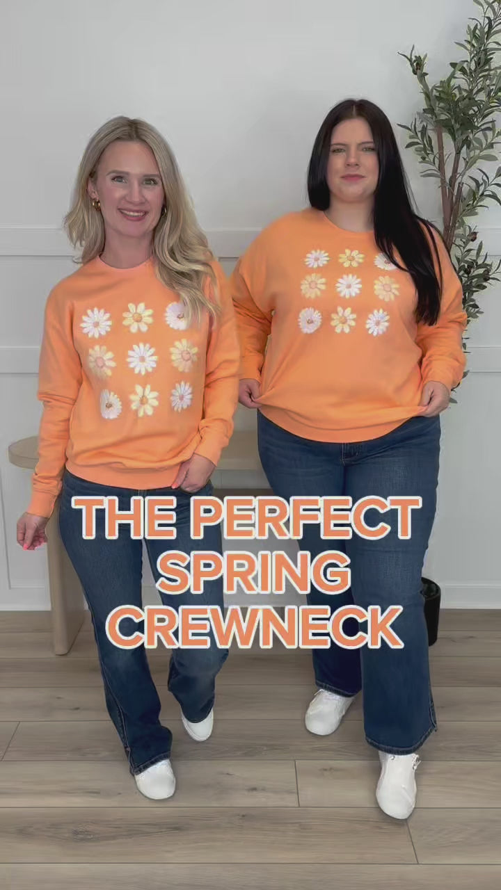 Wrap yourself in springtime charm with this soft orange crewneck featuring an adorable daisy pattern that brings cheerful vibes to your everyday wardrobe. The cozy cotton blend fabric pairs perfectly with a plush fleece lining, creating the ultimate comfort layer for cool mornings and breezy afternoons. Whether you're sipping coffee on the porch or heading out for a casual adventure, this sweatshirt delivers that perfect blend of style and snuggle-worthy softness that makes you smile.