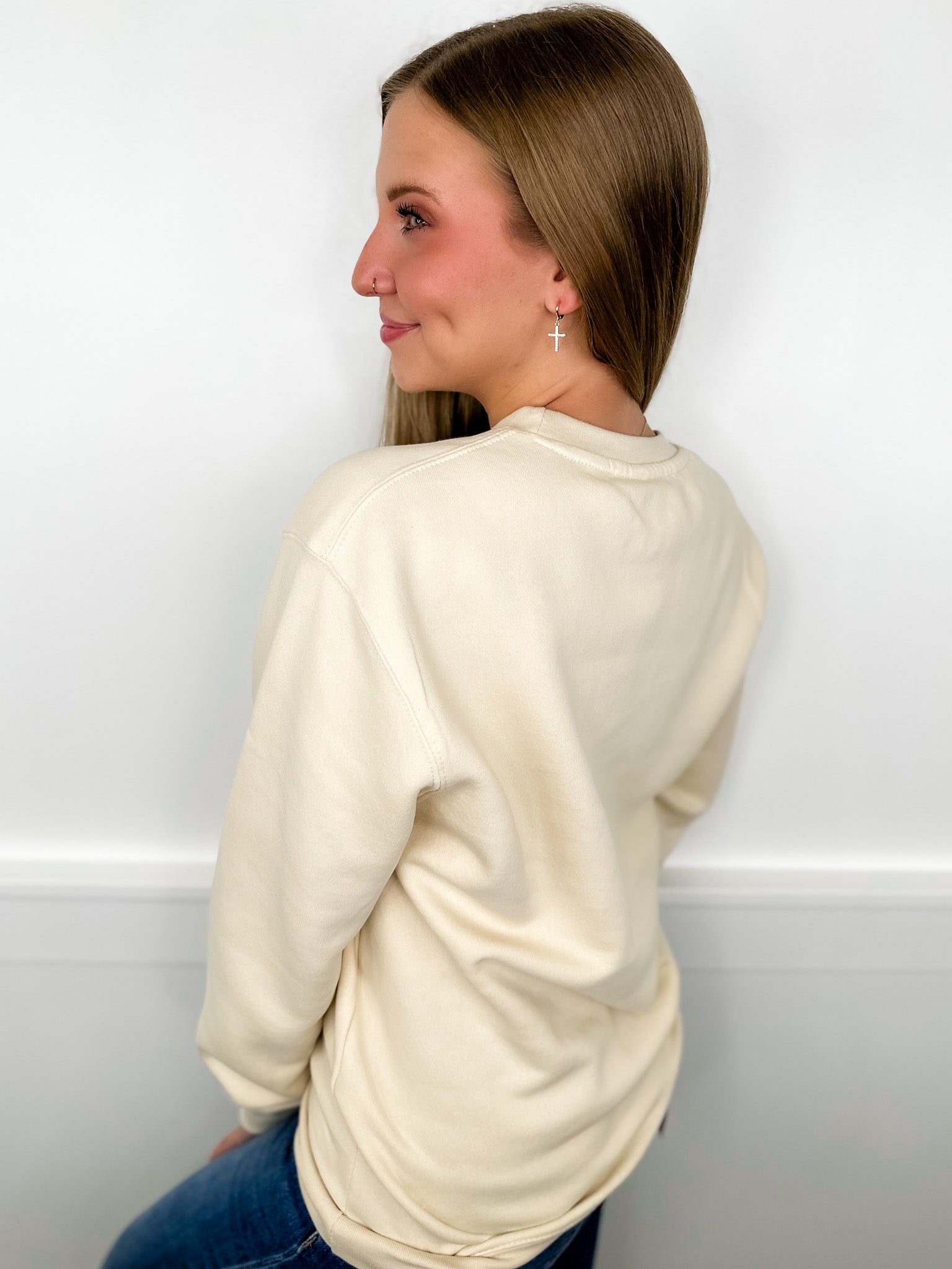 Wrap yourself in cozy comfort with this cream-colored crewneck sweatshirt featuring playful puff letters that express gratitude in style. Made from a soft cotton blend, it’s perfect for lounging or casual outings, adding a fun and warm touch to your everyday look.