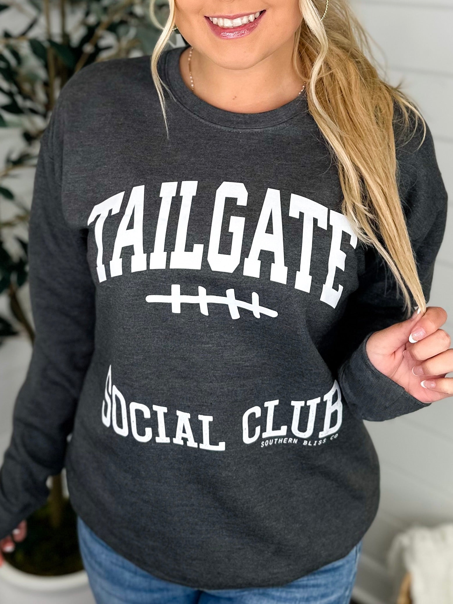 Get ready for the season with our Tailgate Social Club Graphic Crewneck! Made with soft cotton blend, this long sleeve will keep you comfortable pre-game and during the football action. Show off your love for tailgating in style - finally, a club we can all get behind!