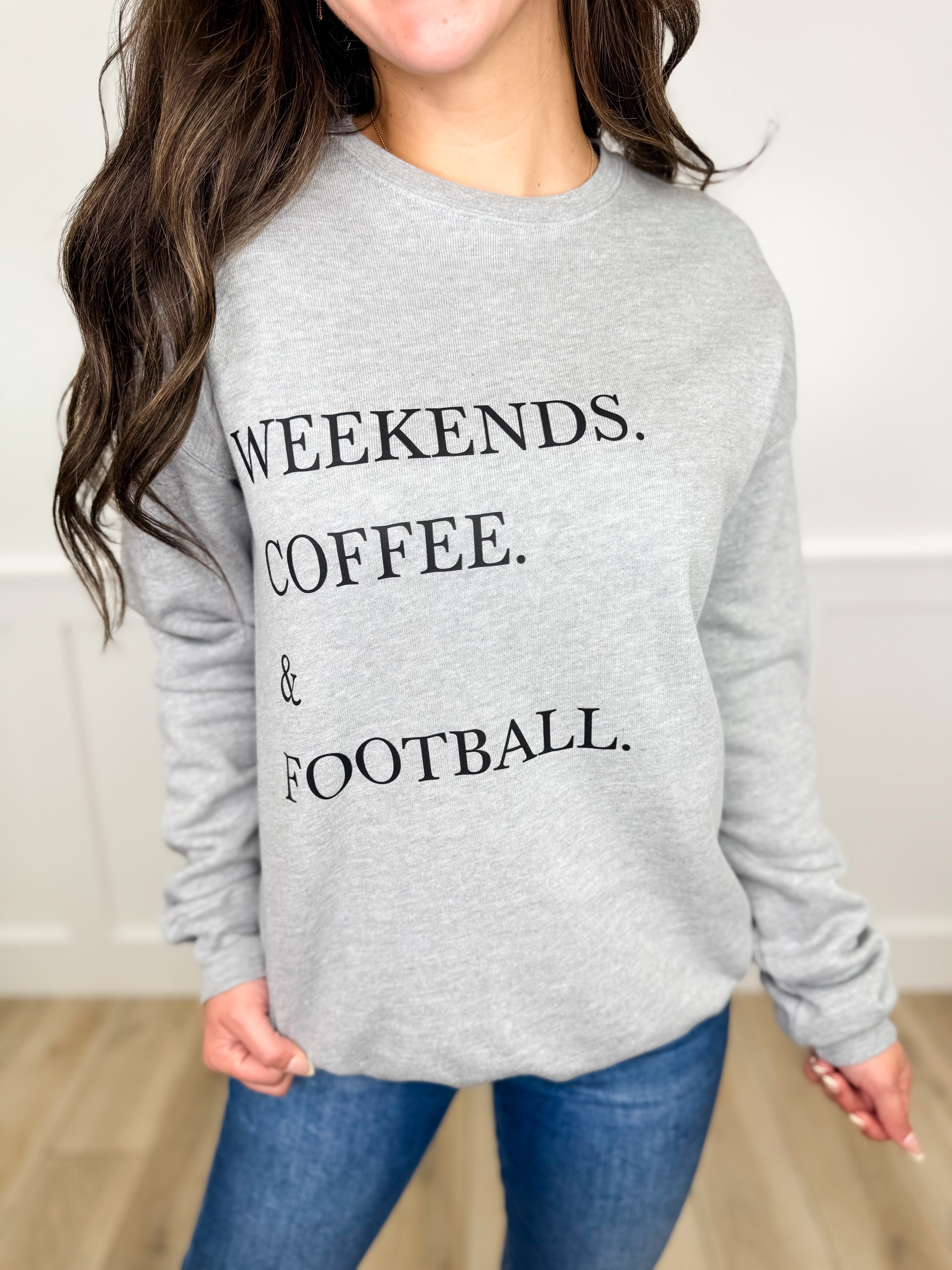 Embrace your laid-back weekends with this grey cotton blend long sleeve tee from Avery Mae. Featuring a cozy soft fleece lining, it keeps you comfortably warm without weighing you down. Perfect for coffee sips and football cheers, its lightweight feel lets you move with ease while showing off your weekend vibe.