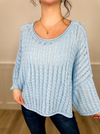 Admiring From Here Sheer Mesh Short Sleeve Blue Avery Mae Top