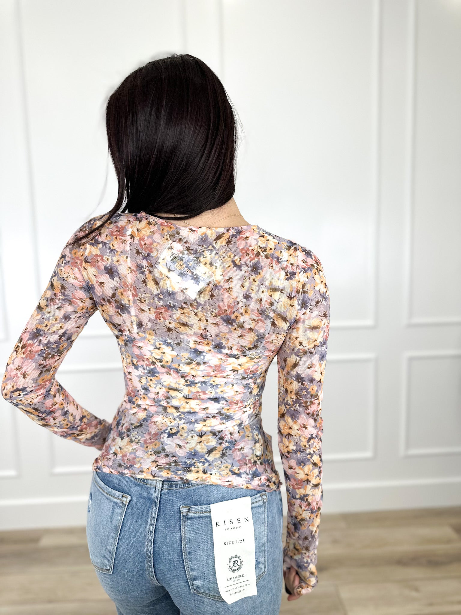 Embrace effortless elegance with this sheer mesh long sleeve top, featuring a delicate floral print that adds romantic charm to any outfit. The thumb holes provide a cozy, secure fit while the lettuce hem creates a soft, finished edge. Perfect for layering or wearing solo, this versatile piece transitions seamlessly from casual days to evening occasions. The lightweight mesh fabric offers breathable comfort without compromising on style.