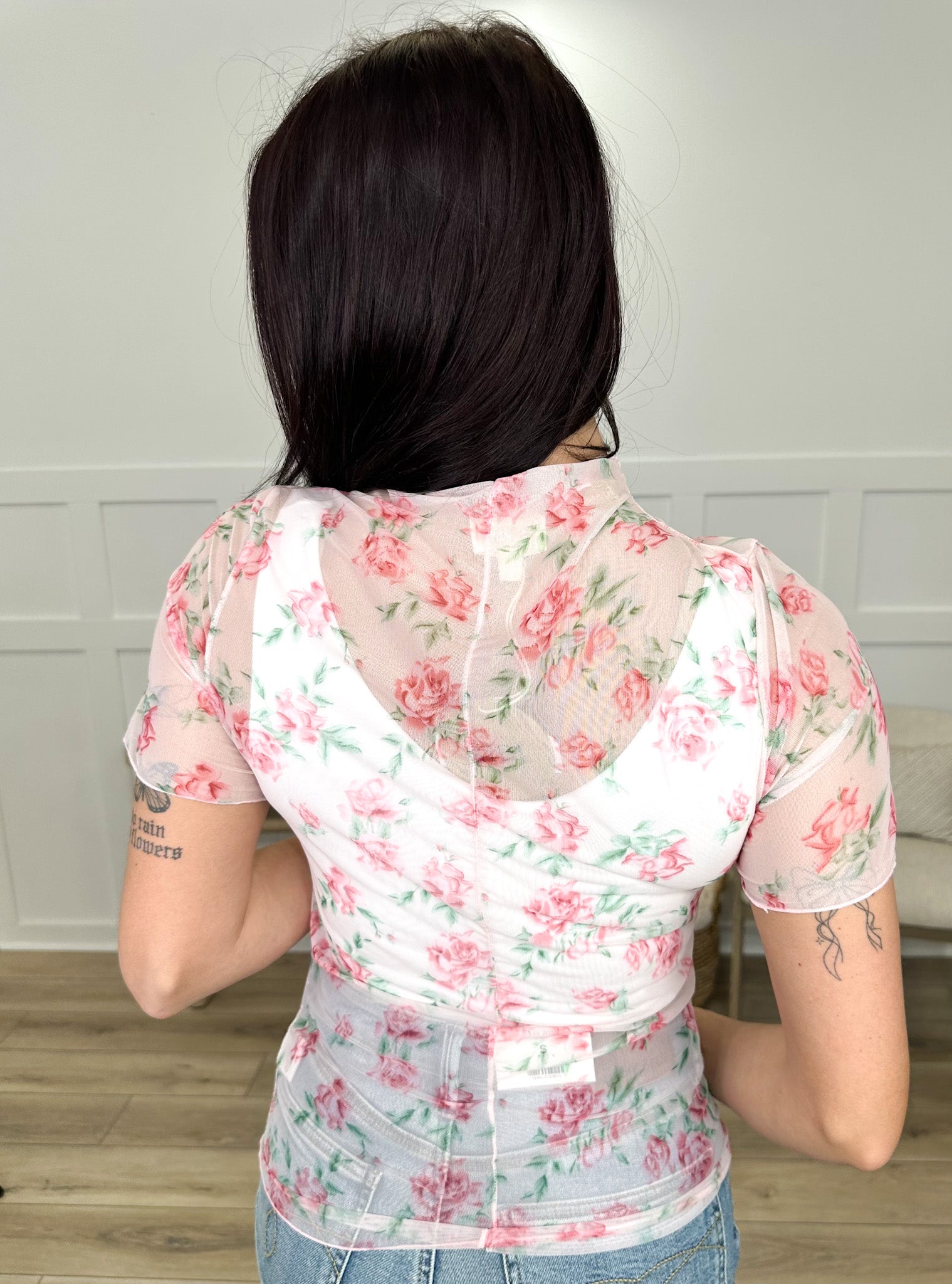 Dreamy florals meet a modern silhouette. This high-neck sheer top is the ultimate layering piece for the romantic at heart. Featuring a delicate floral print on lightweight mesh, it offers a soft-focus effect that’s as comfortable as it is striking.
