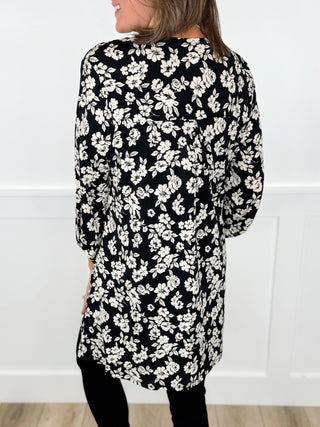 Dear Scarlett Beginning to Bloom Wrinkle-Free 3/4 Sleeve Black Cardigan