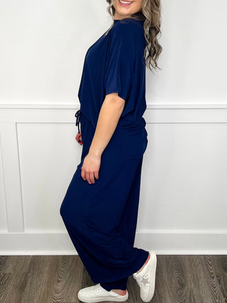 Dear Scarlett Backseat Driving High-Rise Lightweight Wide Leg Blue Set