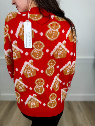 Dear Scarlett Christmas Gingerbread Knit Long Sleeve Red Button Up Cardigan