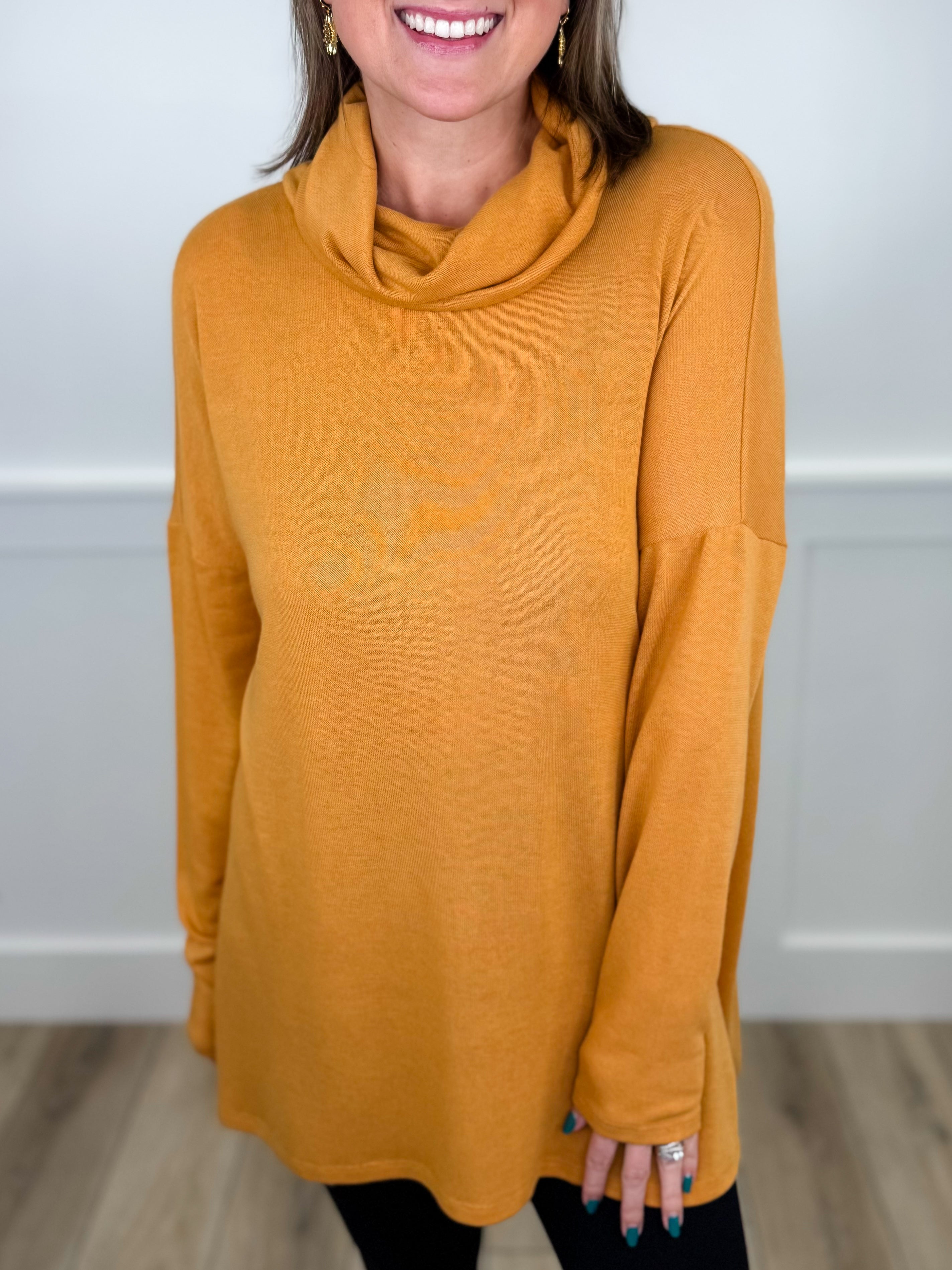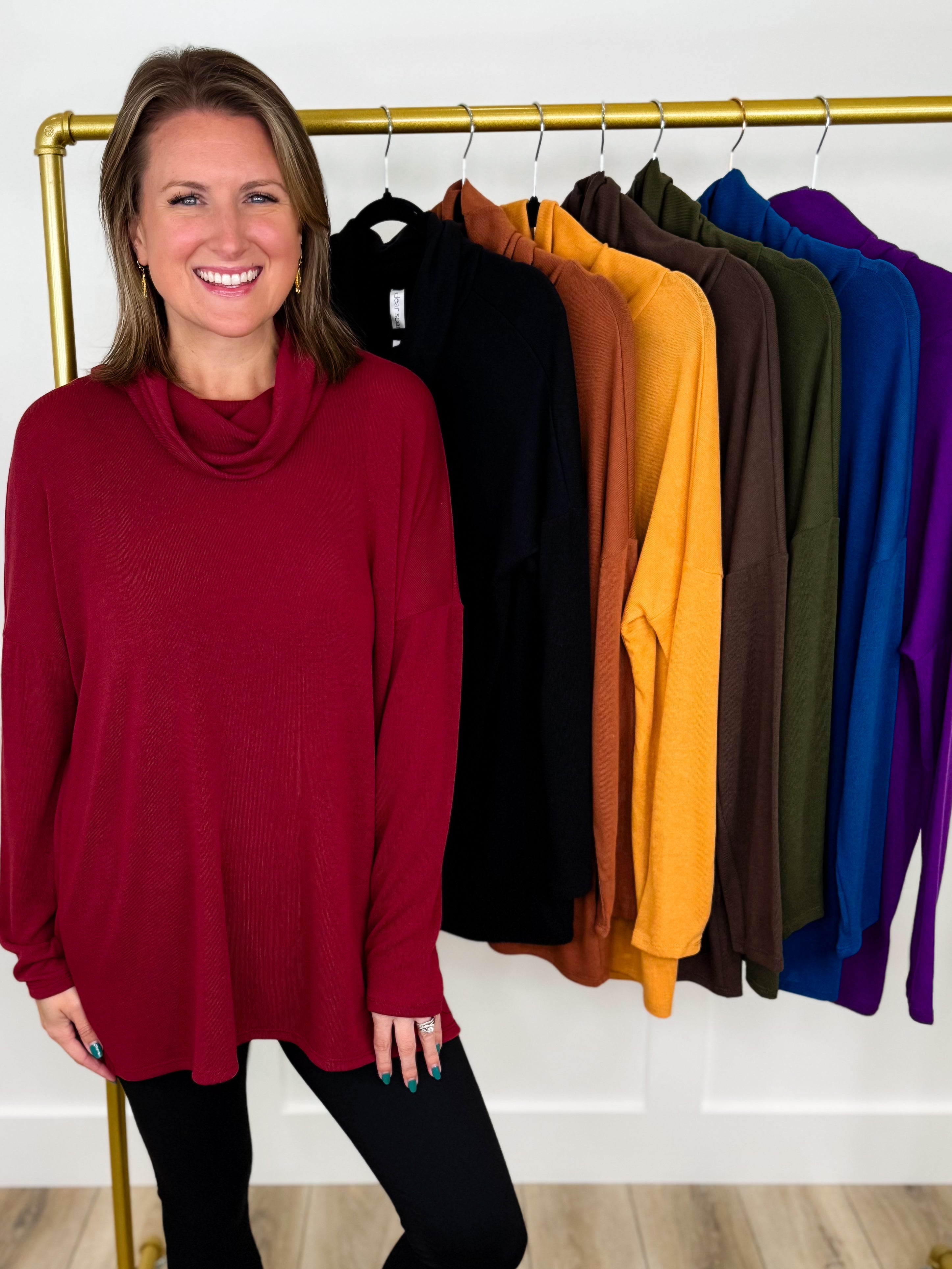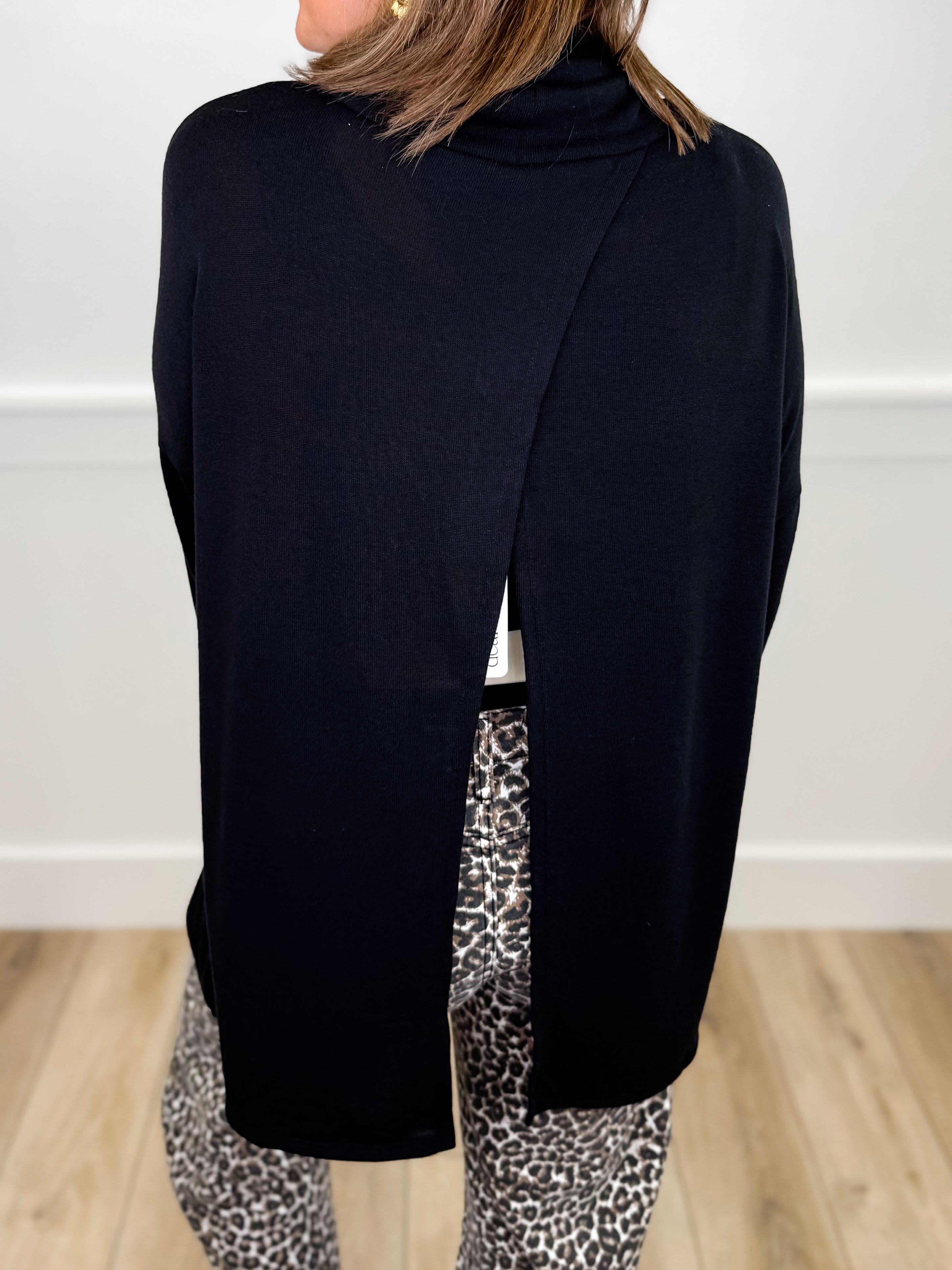 Add a playful twist to your style with the Dear Scarlett Not Much Time Knit Long Sleeve Top. This turtleneck features a fun split open back and a flowy silhouette that moves with you. Available in eight lively colors, it’s the perfect mix of cozy and cheeky for any occasion.